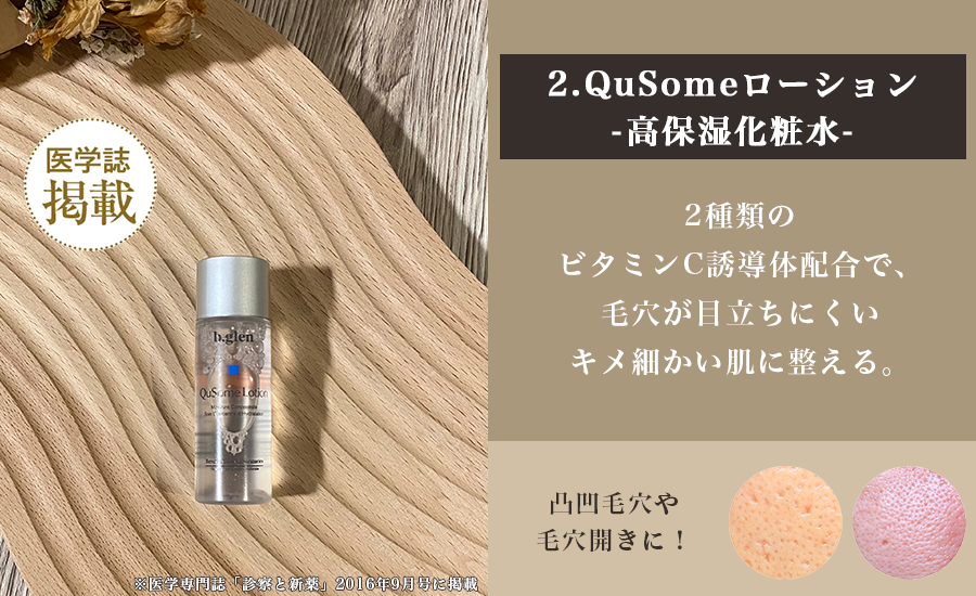 このQuSome®の技術が毛穴ケアプログラムで使用する化粧水、美容液、保湿ゲルに使われています。