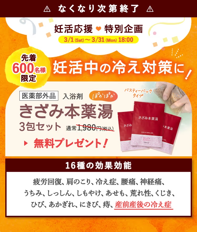 3月限定で冷え対策の漢方入浴剤がついてくるそうです✨️