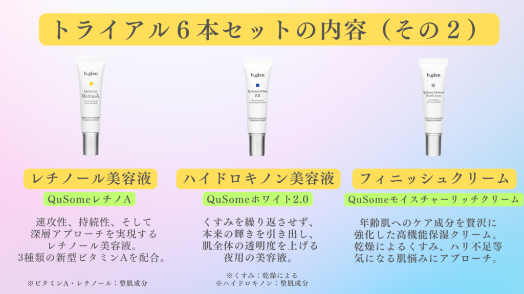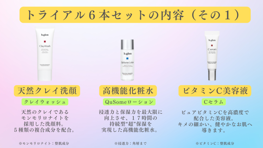 この6本セットで試してみて、自分が気に入ったものや、特に効果を実感したものだけを選んで続けることもできちゃいます。
