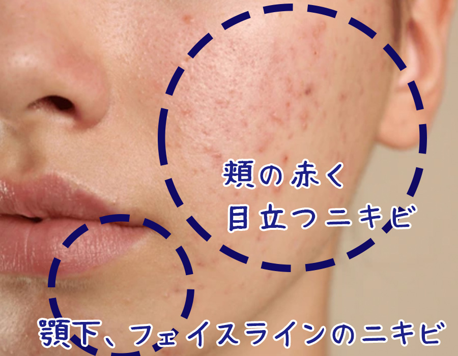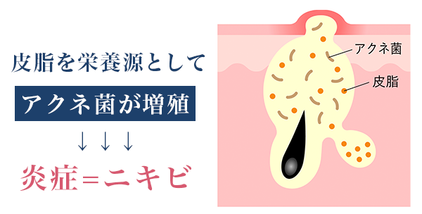 生理や生活習慣の乱れにより、皮脂が増えたり詰まったりすることで、アクネ菌が増殖し、炎症を起こしてしまいます。