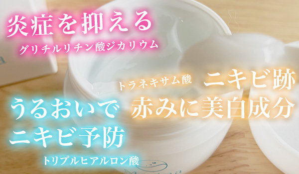 ニキビを殺菌する成分や潤いを閉じ込める成分が入っているとのことで、