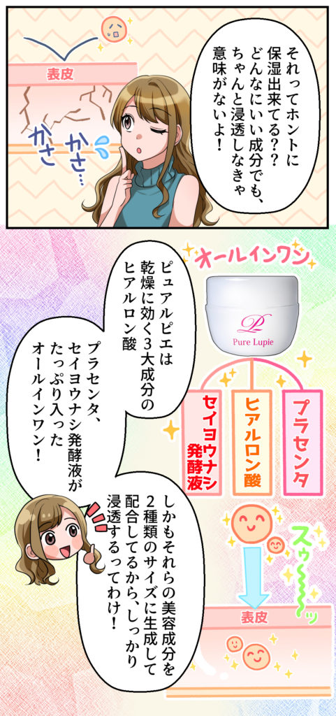 4種類のうるおい成分を2種類の大きさの成分にすることにより、