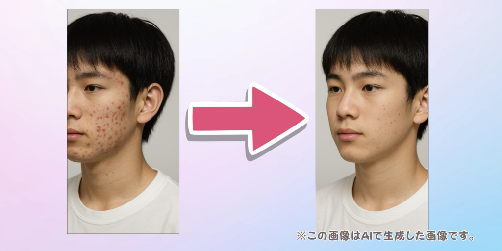 息子のニキビ顔を晒すわけにはいかないので、AIで作った画像ですが、本当にこれくらい変化しています。