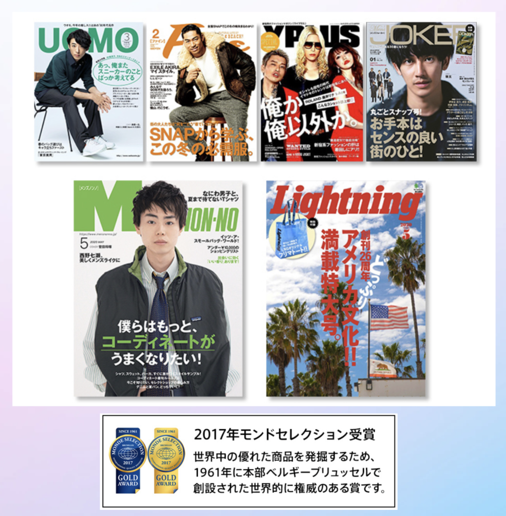 あと、モンドセレクションを受賞していたり、色んな雑誌に掲載されたりしています。